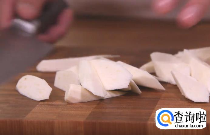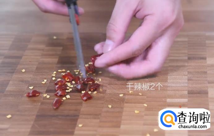 首先,把茭白外面那层叶子皮剥掉,再用刮皮刀刮掉里面的皮后切成小块。然后,将干辣椒用剪刀剪成小段,放在一旁备用。