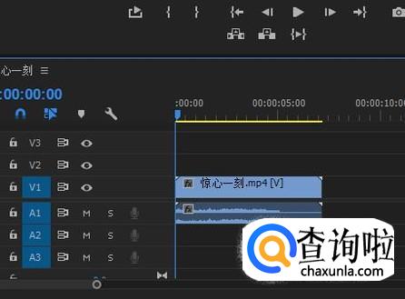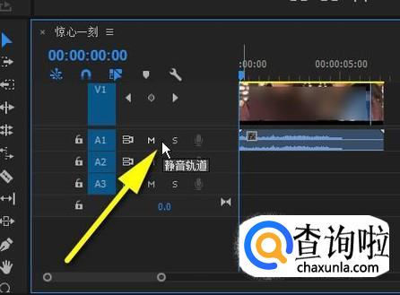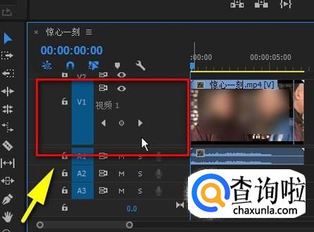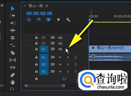 鼠标放在视频轨道1,显示眼睛图标这个位置上。