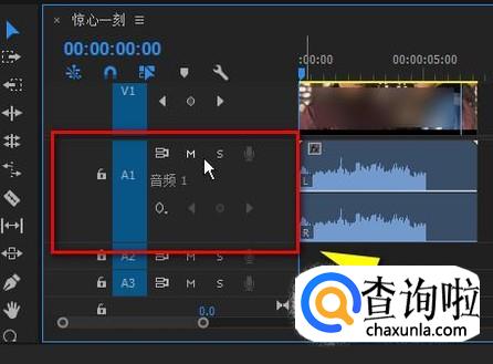 鼠标放在音频轨道1,如下图所示的位置上。