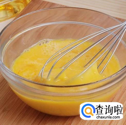鸡蛋洗净,打碎于碗中。