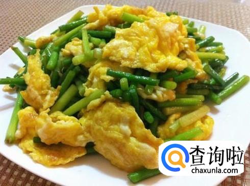 蒜苔炒鸡蛋,美味可口,是一道家常美食。