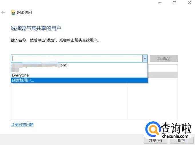 以特定用户为例,点击特定用户后,打开网络访问的选项,点击下拉箭头后,发现有everyone和创建新用户,everyone代表分享后任何人都可以访问