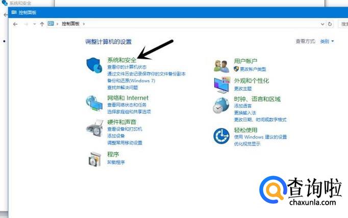 在控制面板界面点击 系统和安全