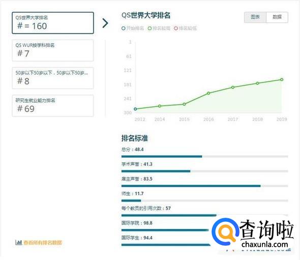 注:QS世界大学排名是世界公认最具影响力的全球性大学排名之一,主要评价指标为:学术领域的同行评价(40%)、全球雇主评价(10%)、单位教职的论文引用数(20%)、教师/学生比例(20%)、国际学生比例(5%)、国际教师比例(5%)