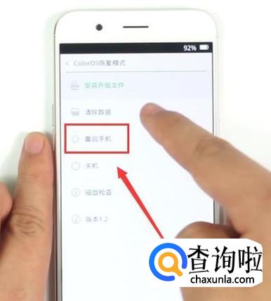 返回到上一界面,选择“重启手机”即可解决忘记锁屏密码的问题,如图所示。