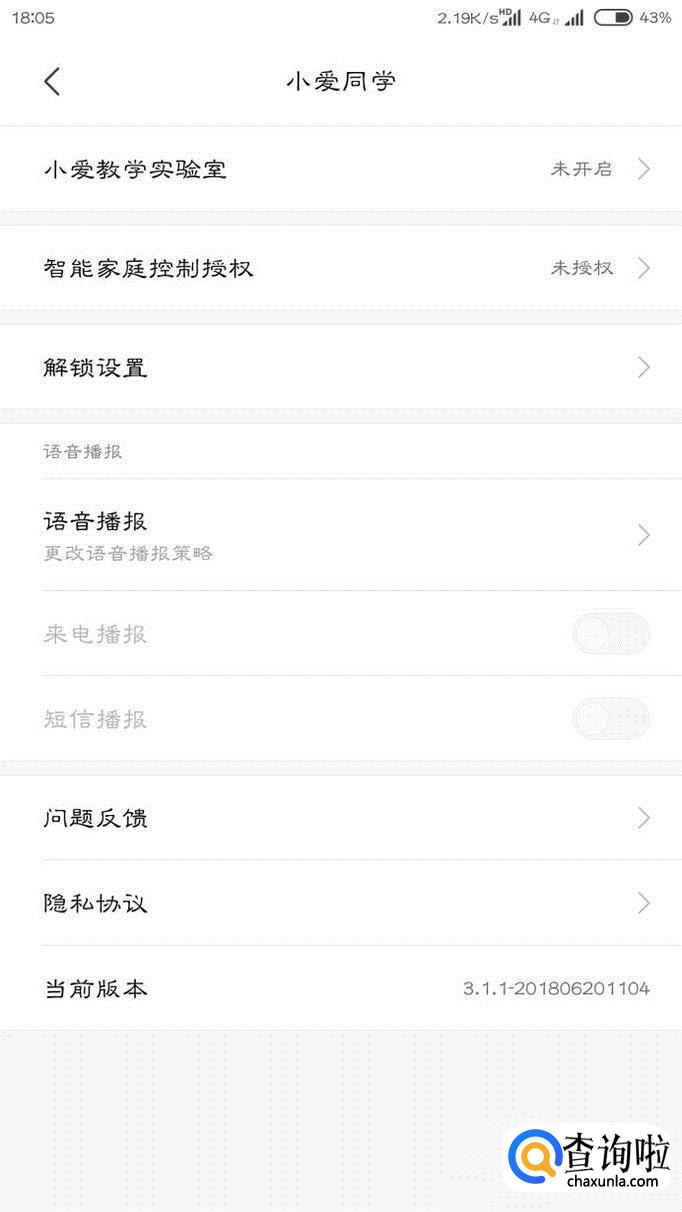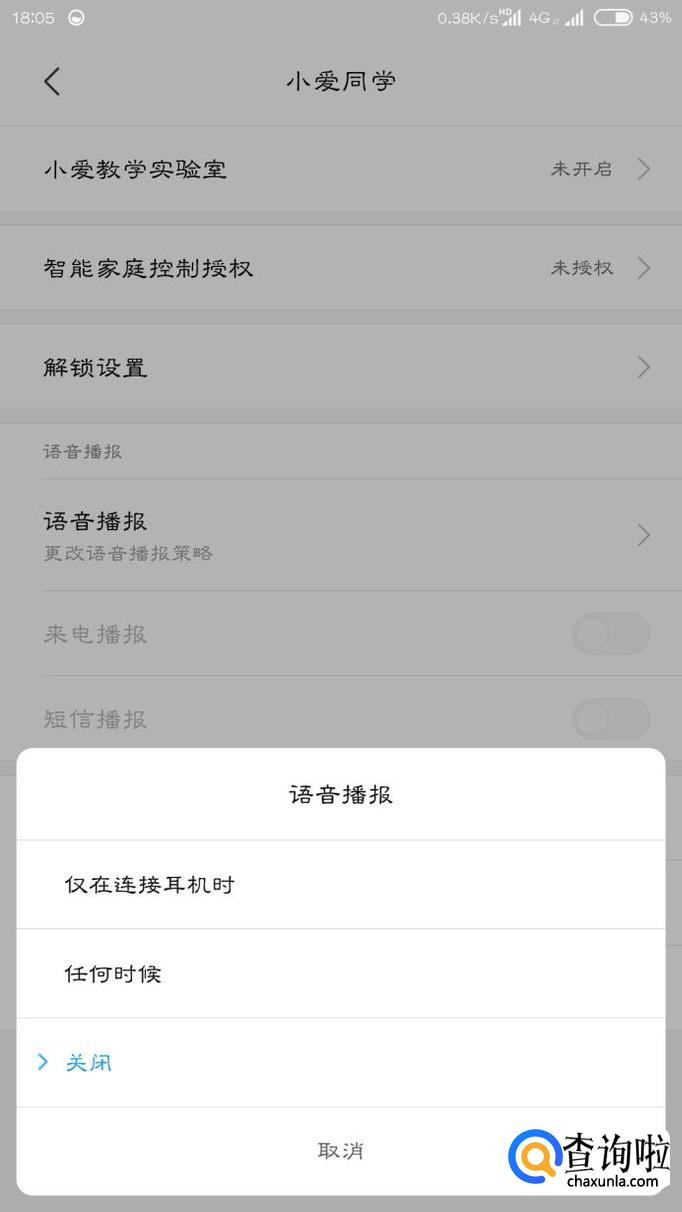 最后一项是语音播报,使用过小爱同学的小伙伴都知道,小爱同学在回答的时候是默认语音播报出答案的,这个设置可以选择播报的条件。