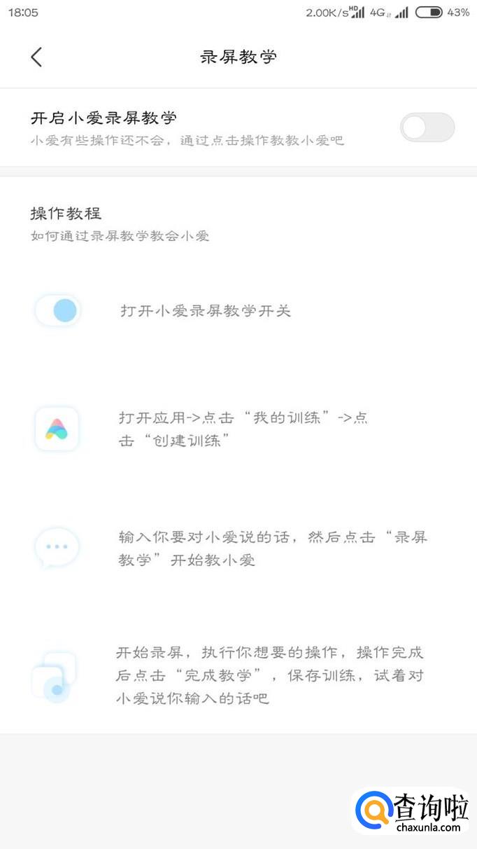第一个小爱实验室最最要是录屏教学,即通过录屏来指定小爱完成一些操作,类似于按键精灵的道理。