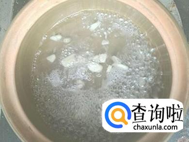 锅中倒入适量的水,把冰糖和大蒜放入锅中进行煮至,用中火慢慢进行煮制,一边煮一边搅拌