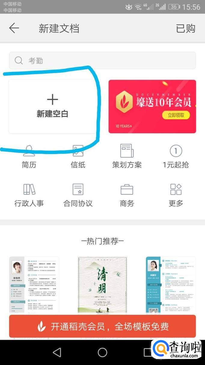点击“新建空白”,就可以新建一个Word的空白文档。