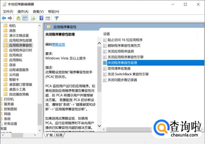 接着我们右击“关闭程序兼容性助理”选项,对话框中选择“编辑”。再勾选“已启用”。