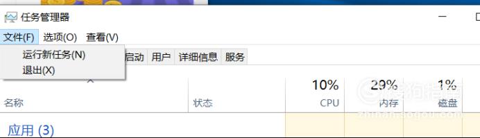我们首先右击任务栏,然后打开任务管理器,选择左上角的“文件”,之后再选择“运行新任务”。