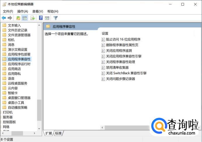 接着界面就会弹出一个文件框,我们先打开“管理模板”,然后打开“Windows组件”,最后再打开“应用程序兼容性”。
