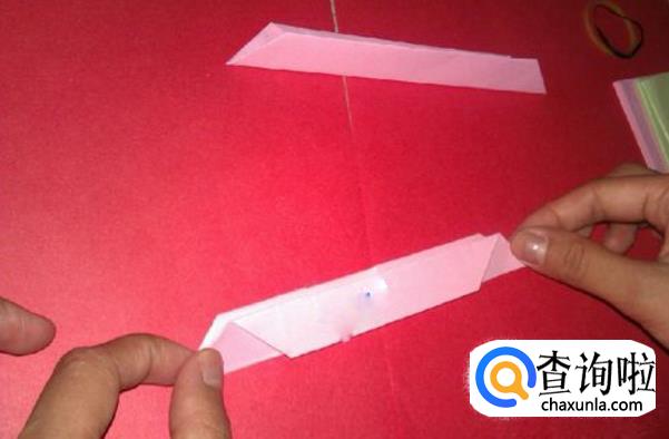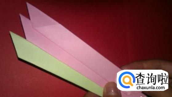这里要特别注意,折第二张纸是往外折齐的,折第三张纸,折法跟前面一致,按中心线往内折齐。