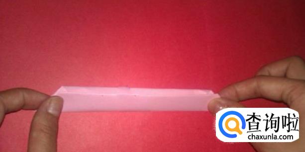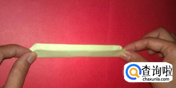 如图所示,将纸条的下半部分从下往上延中心线对折。