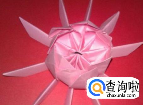 对半折后摊开,按对准中线折出90°小三角形,左右上下边都一样,如图所示。