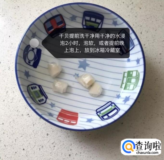 干贝提前清洗干净,用清水浸泡两个小时,如下图所示。