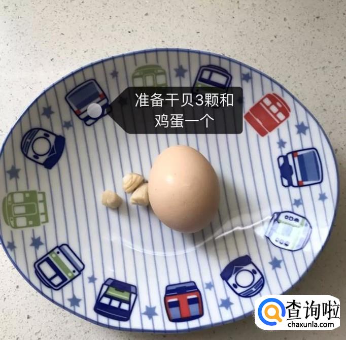 首先准备好三颗干贝和一枚鸡蛋,如下图所示。