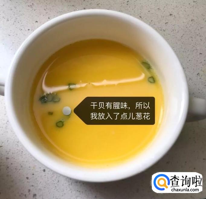 一道美味可口的干贝蒸蛋就做好了,希望大家能够喜欢。你学会了吗?赶快动手试一试吧!