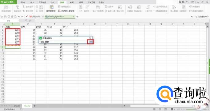 点击“来源”后,可以看到如图所示界面。用鼠标选中班级的序号,然后点击红框位置,回到数据有效性的对话框