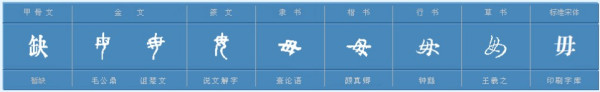 女字加一笔是毋。象形兼会意字,女之分化字。从女,中间加一横笔为分化符号,女亦声。女、母、毋均一字之分化。战国时始分化出“毋”字。