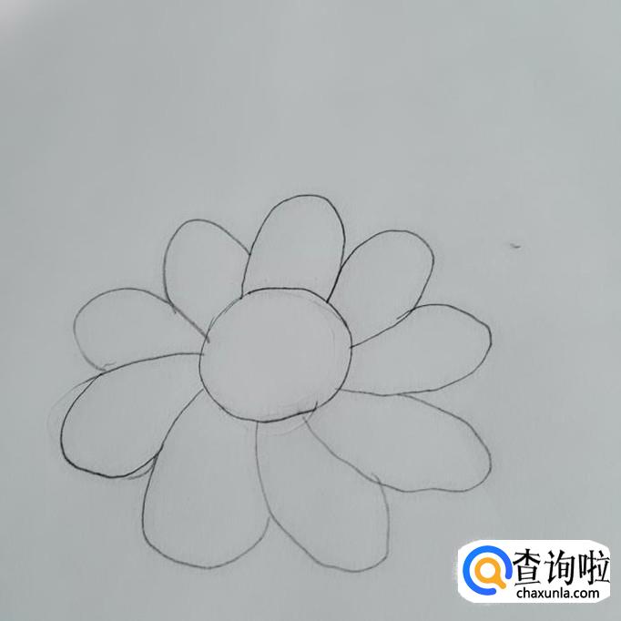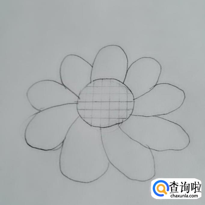 首先画出向日葵的圆盘,边缘也画好。如图所示。