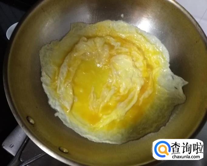 开火热锅,锅热后,加入30ml油,滑锅,使锅内油均匀挂锅,油热以后,调中火,蛋液倒入锅中,变为淡黄色就出锅;