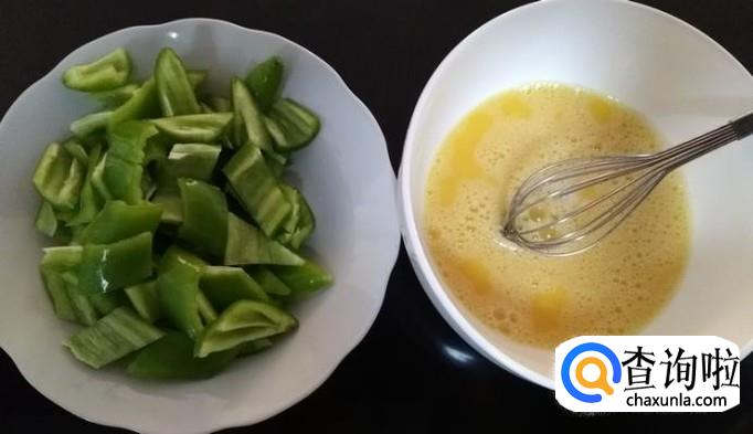 青椒2条,鸡蛋4个,葵花籽油30ml,蒜3瓣,食盐3g
