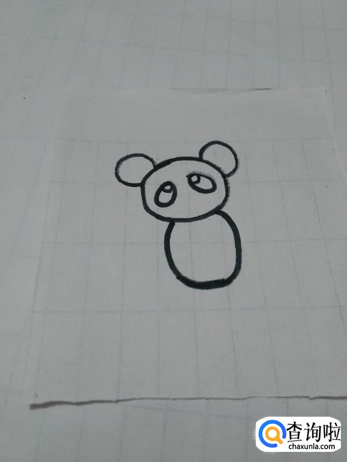在熊猫头的下面画一个椭圆形,表示熊猫的身体。