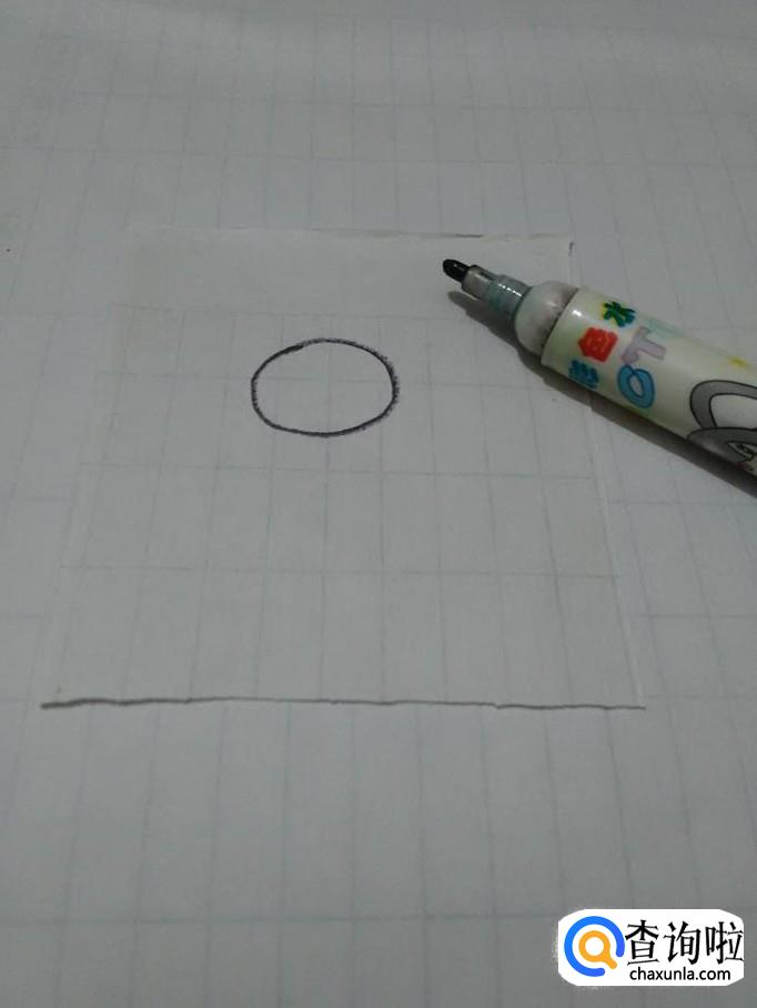 先用黑笔在纸上画一个椭圆形,表示熊猫的头。