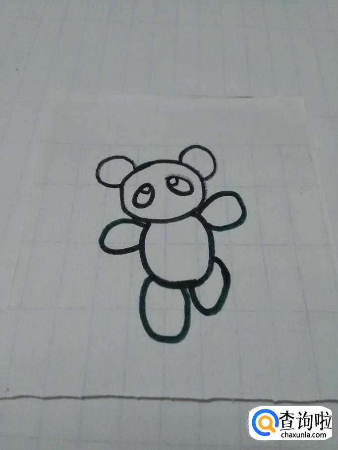 在身体的四周画四个椭圆形,表示熊猫的四肢。