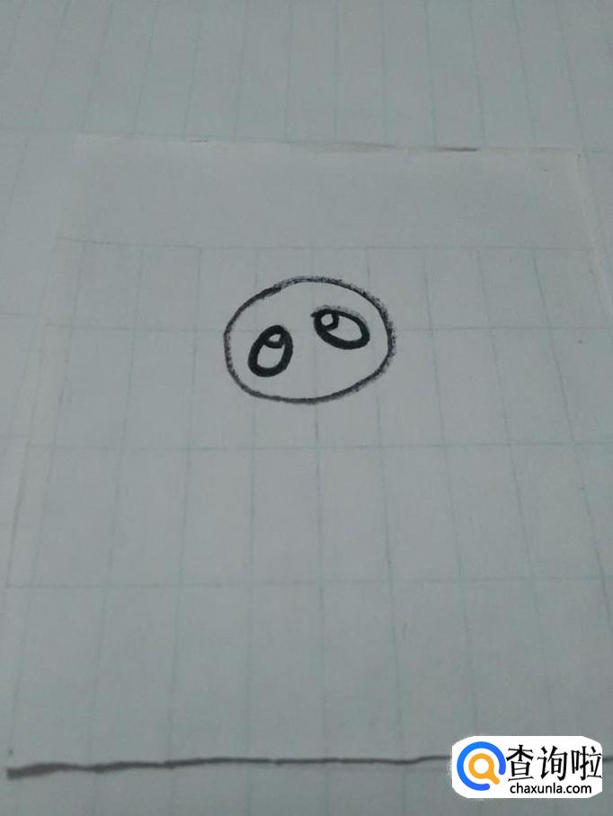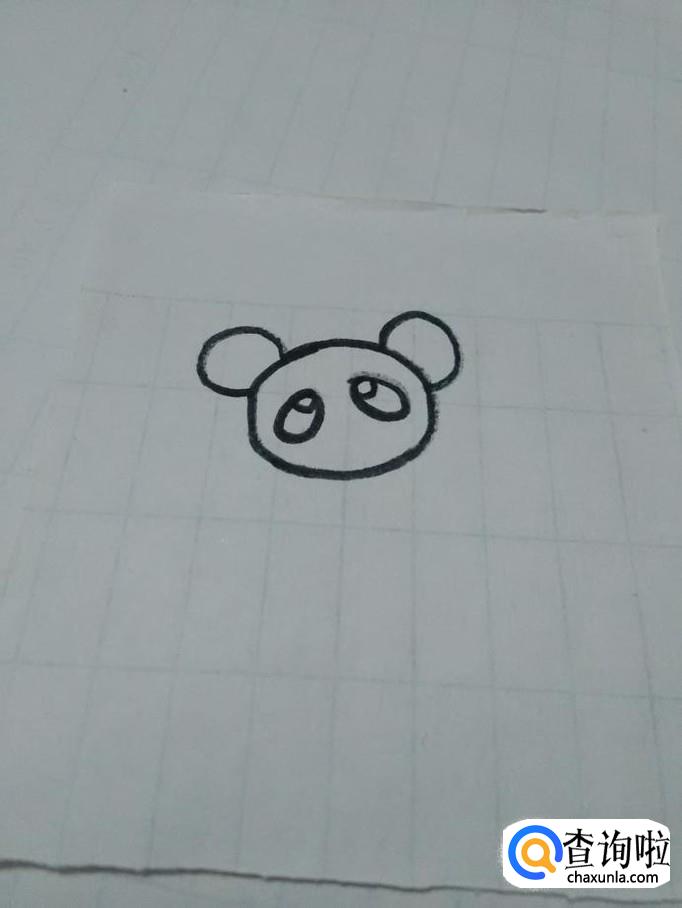 在头的中间画两个椭圆形,表示熊猫的眼睛,在眼睛里面画两个圆形,表示熊猫的眼珠。