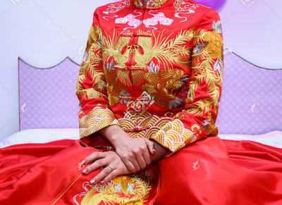 秀禾服,多以金色和红色为主,红色喜气,寓意喜庆吉祥;金色则显华贵,传承大气之美。秀禾服上的刺绣,多以龙凤、百鸟、鸳鸯、双燕、百花等寓意美好的图案为主。比如龙凤多有降福、吉祥、富贵、美满之意;鸳鸯代表着爱情的忠贞美好,寓意新人恩爱如初;成双的飞燕则代表着希望新人能够过上自在和睦、甜甜蜜蜜的小日子。