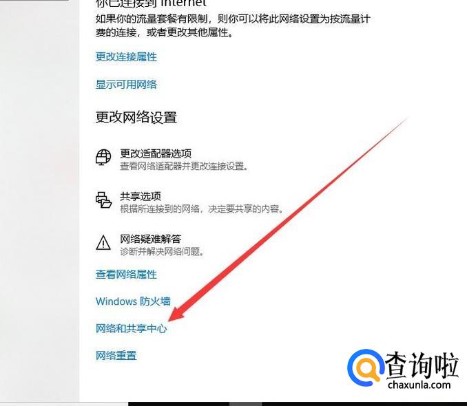 进入之后,选择“网络和共享中心”,进入下一页面,如图所示。