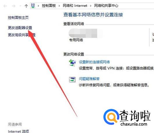进入之后,点击“更改适配器设置”,进入下一页面,如图所示。