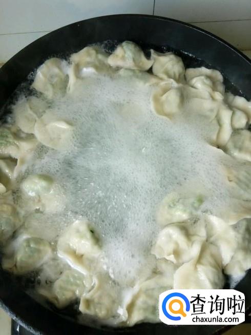 锅中加入适量的水,大火烧开。然后,再将包好的饺子放入沸水之中,盖上锅盖,大火烧开。锅中加入适量凉水,之后再将大火转为小火,继续烹煮,待锅再烧开后,即可盛出。