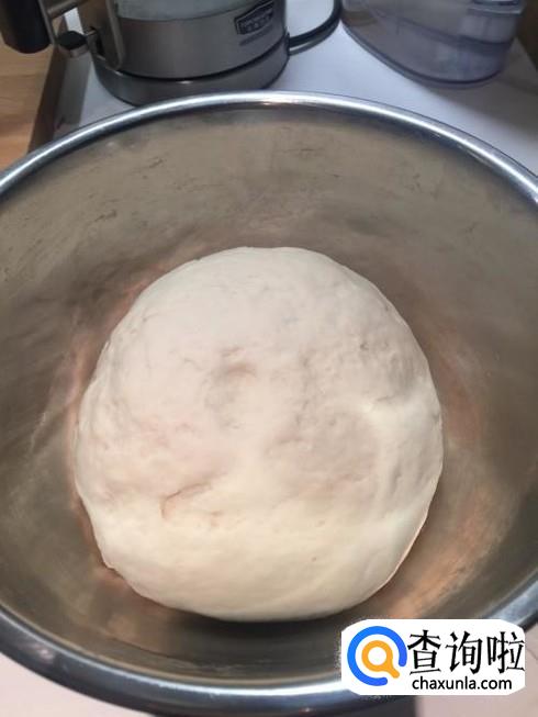 在盆中加入温水,放入适量面粉,和成面团,放入容器之中,用布盖好,使面团稍发一会儿。