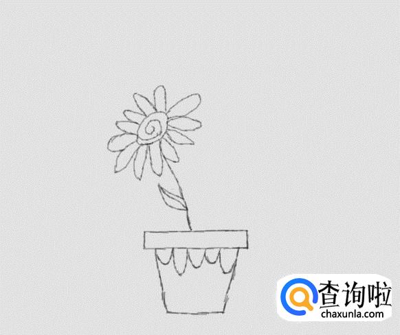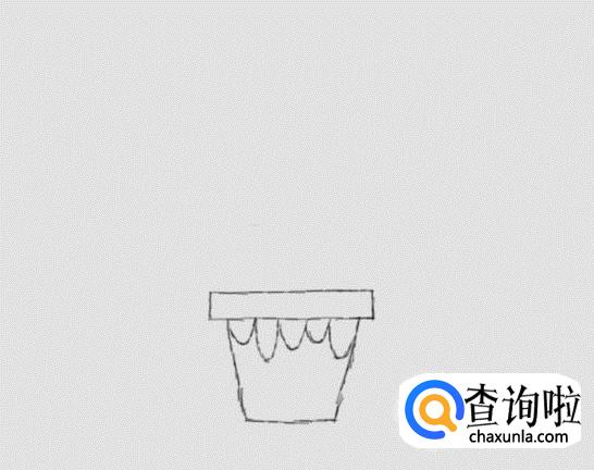 在花盆的盆口基础上在画出小花盆,然后在花盆山在画出装饰线,如图所示: