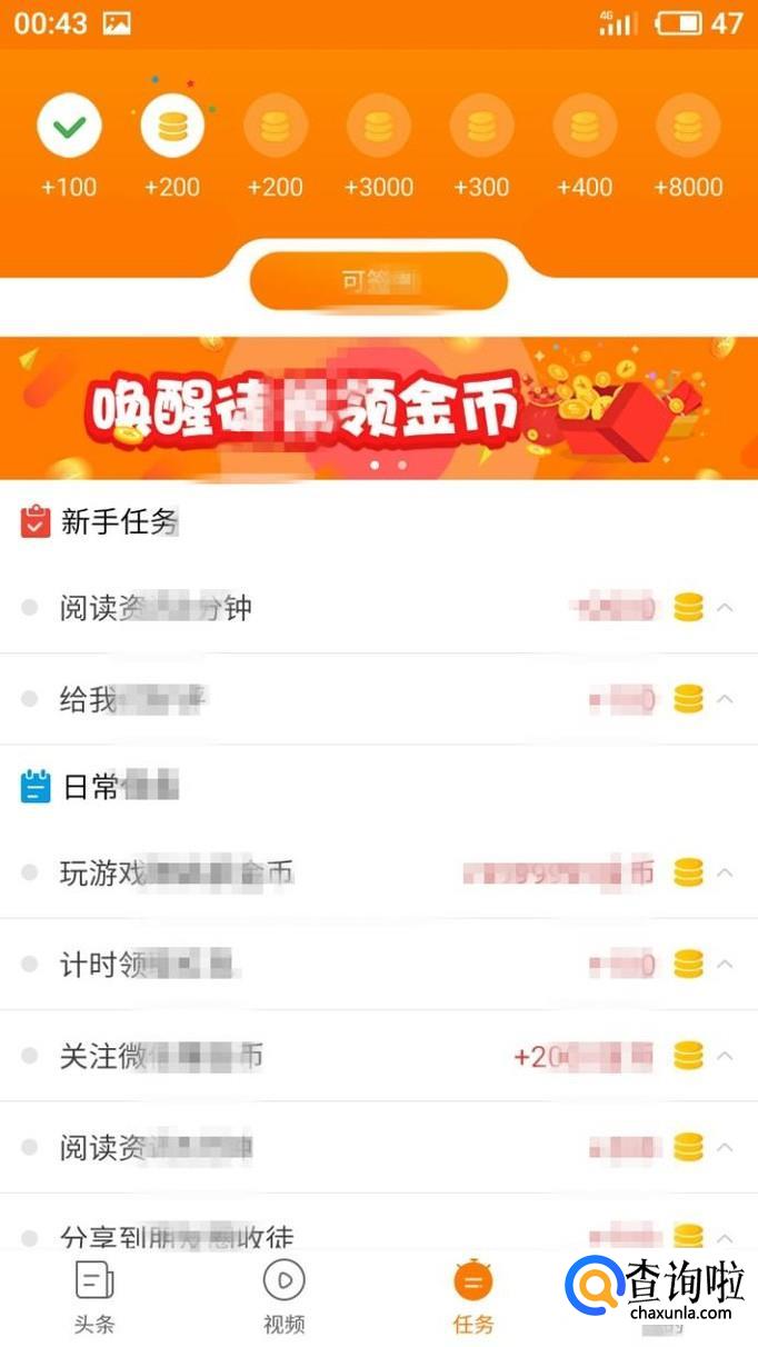 观看视频时,金币圈转满也可以得到相应的金币奖励,除此之外还可以到任务界面,点击签到进行签到获奖励。