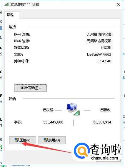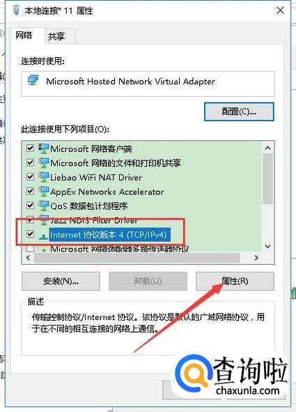 然后选中Internet 协议版本 4 (TCP/IPv4)→属性。