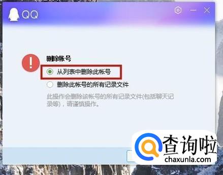 然后勾选从列表中删除此账号,如下图所示。