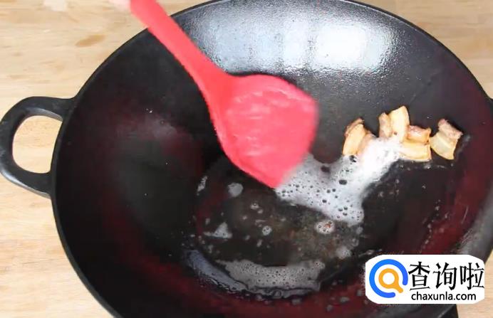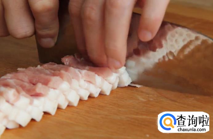 热锅冷油,将切好的五花肉放入进去,翻炒至肉片微微发黄后捞出。