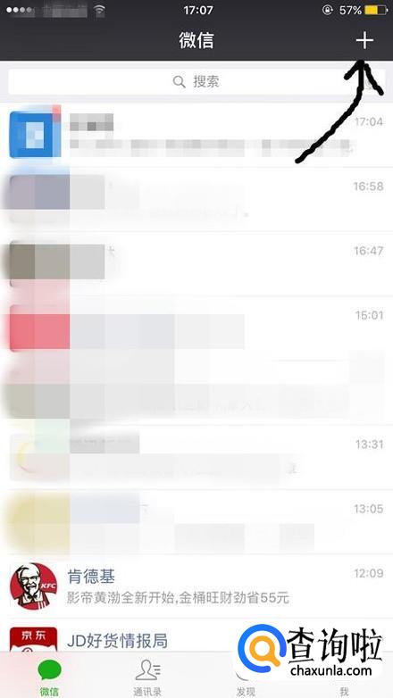 点击右上角的加号。想觉得微信被拉黑的方法,其实可以点击右上角的加号,然后进行设置。