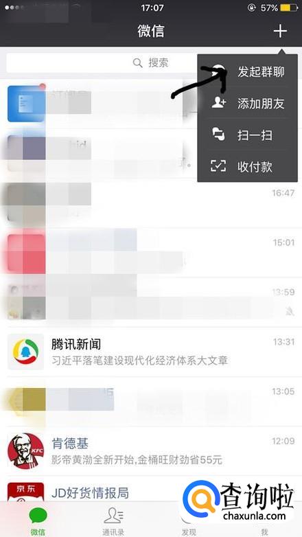 点击新建群聊。如果害怕对方看是自己发起的群聊不加入的话,那么叫朋友来拉个群聊,这样将自己和对方都拉到一个群里即可。