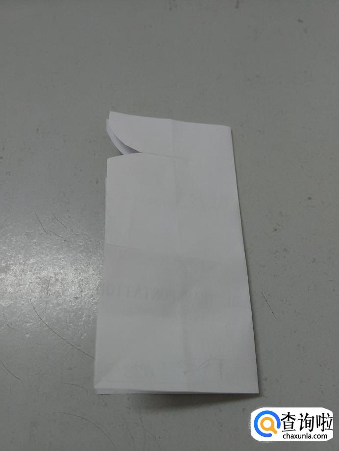 先把纸的右边向左对折,用剪刀在第一行下方剪掉一个小三角。
