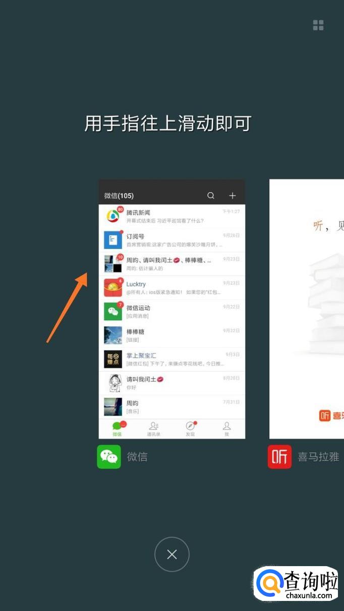 接着弹出很多应用界面的方框,如果我们只想清楚某一个应用的话,我们找到该应用后,用手指在屏幕上向上滑动即可