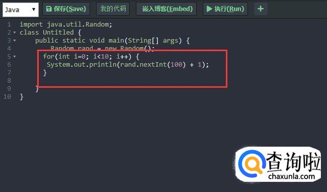 最后运行java程序,我们就会看到产生了10个100以内的随机数,如下图所示