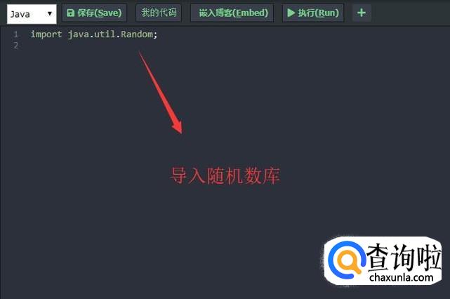 首先需要打开编辑器,导入随机数的Random库,如下图所示