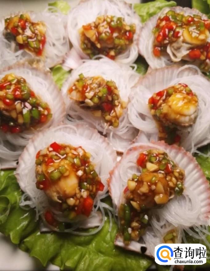 第二道是蒜蓉蒸扇贝,先把蒜蓉炒熟,扇贝煮熟,摆入盘中,撒上青红辣椒末,浇上自己调好的料汁,浇上热油,好看又营养的蒜蓉扇贝就完成啦!