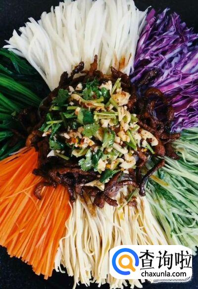 首先第一道是家常打凉菜,把各种颜色不一的青菜切丝摆入盘中,中间放入肉丝与粉丝,浇上调好的料汁,非常美味又好看哦!