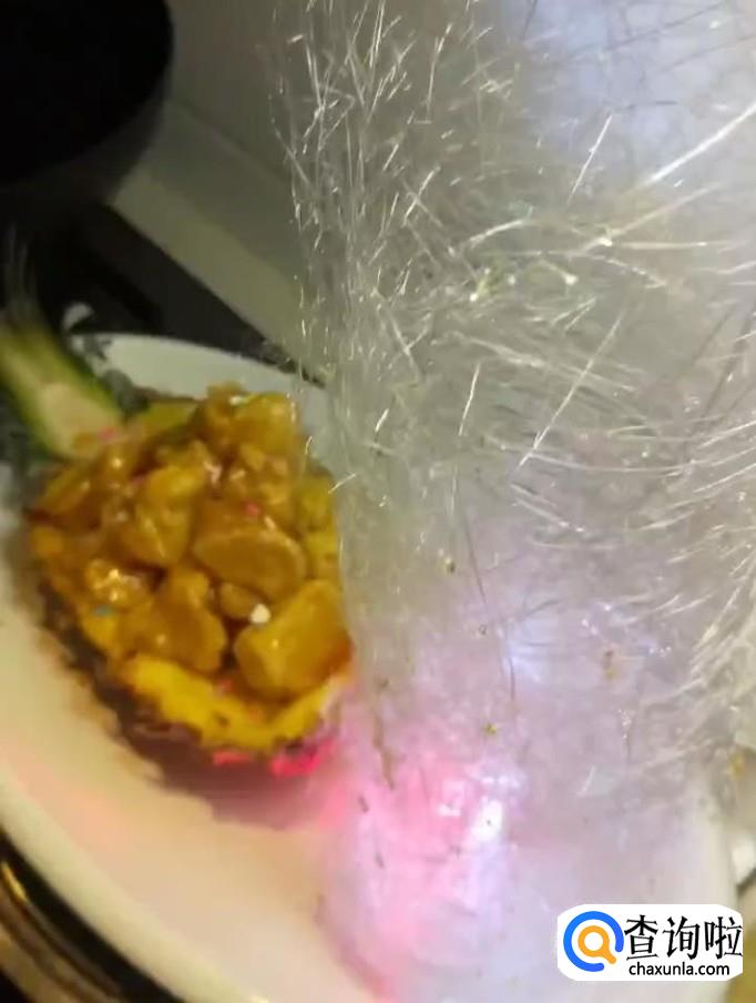 第七道菜是拔丝菠萝,它是有菠萝肉与糖丝柱组合而成的,味道酸甜可口,外酥里嫩,很是美味哦!而且颜值也绝对非常高呢!